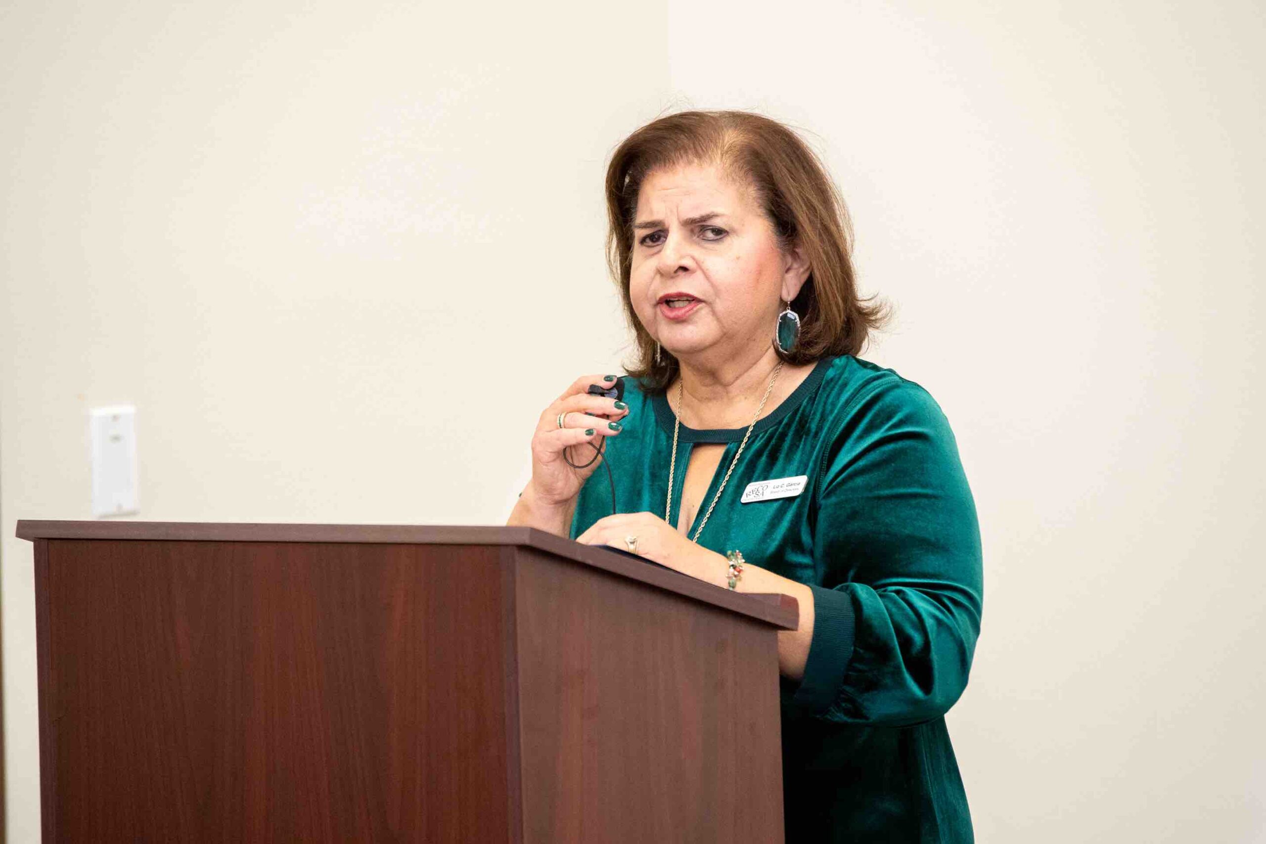 Liz Garcia speaks with attendee