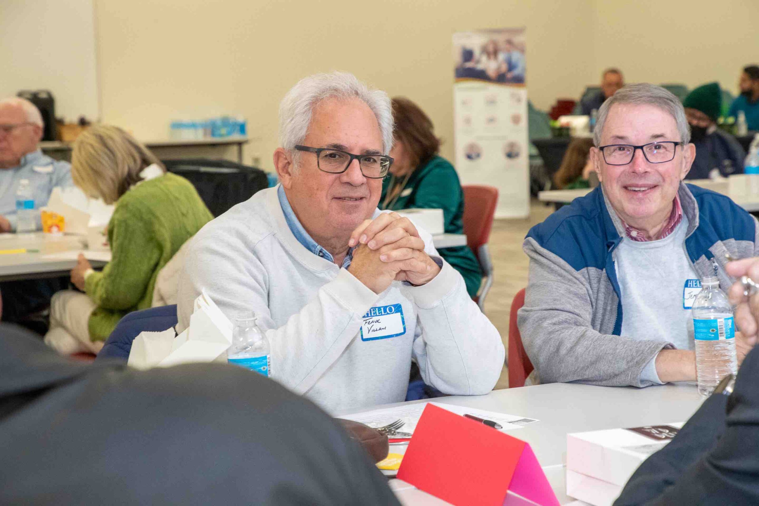 Salvador Garza (left) visits with Kevin Burton (right)