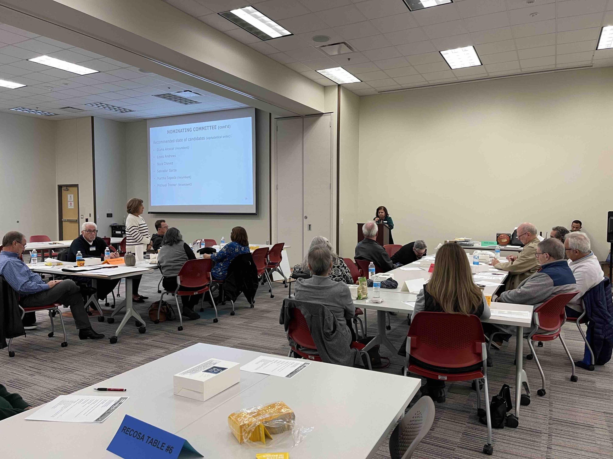 Liz Garcia, Nominating Chair, conducts the board election